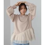 トレーナー スウェット ペプラムオーガンジーポンチトップス レディース