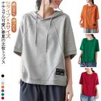 トレーナー 半袖 レディース スウェット パーカー 大きいサイズ ゆったり 半袖 パーカー 半袖Tシャツ Tシャツ フード付きtシャツ トレーナー パ