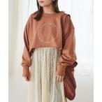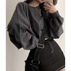 トレーナー スウェット チュールスリーブ裏起毛クロップドスウェット レディース