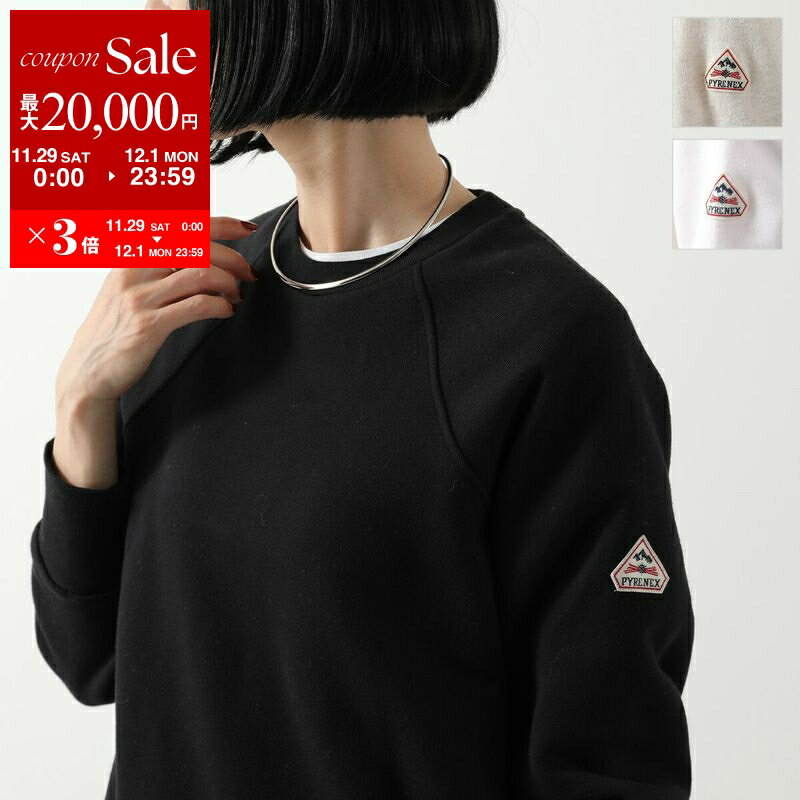 【最大2万円OFFクーポン対象・11/29~12/1限定】PYRENEX ピレネックス トレーナー MOOD ムード HWY022 レディース スウェット 長袖 コットン 裏起毛 ロゴパッチ リブ クルーネック カラー3色