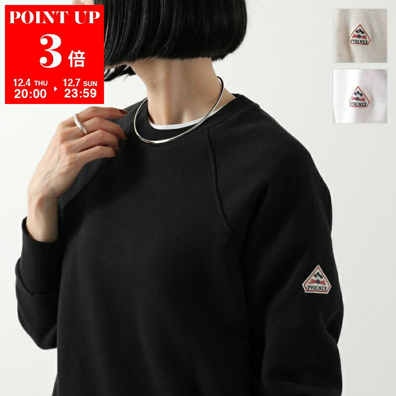 PYRENEX ピレネックス トレーナー MOOD ムード HWY022 レディース スウェット 長袖 コットン 裏起毛 ロゴパッチ リブ クルーネック カラー3色