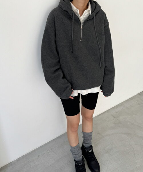 【送料無料】El marフリースハーフジップパーカーキャナルジーン CANALJEAN El mar エルマール レディース スウェット 長袖 フリース フーディー ハーフジップ 無地 ZIP レイヤード シンプル カジュアル おしゃれ