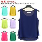 シフォンタンクトップ シフォン タンクトップ レディース シフォン ノースリーブ 薄手 ふんわり トップス インナー Uネック レイヤード風 重ね着