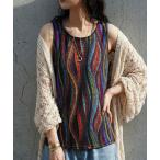 タンクトップ ノースリーブ 配色ニットタンクトップ レディース