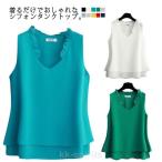 シフォン タンクトップ レディース タンクトップ シフォン 2枚シフォン重ね ノースリーブ トップス シフォンブラウス フリル Vネック キャミソール