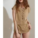 水着 Vネックタンクトップフリルクロシェビキニ/水着 レディース