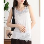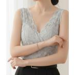 タンクトップ ノースリーブ カップ付き花柄レースタンクトップ レディース