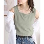 タンクトップ ノースリーブ ランダムリブ スクエア無地2wayタンクトップ(袖なし) レディース