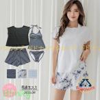 水着 レディース 体型カバー セパレート 大きいサイズ おしゃれ かわいい ママ水着 半袖 女性用 ラッシュガード ボタニカル 柄 黒 露出控えめ 日焼