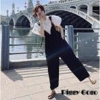 フリル サロペット パンツ レディース 夏 春 オールインワン 大人可愛い サロペットパンツ ワイドパンツ 春秋 ウエストマーク タンクトップ