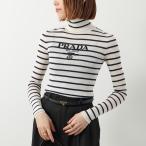 PRADA プラダ セーター P26451 11J5 レディース ニット タートルネック ハイネック ロゴ 長袖 ボーダー ウール F058L/AVORIO+NAVY