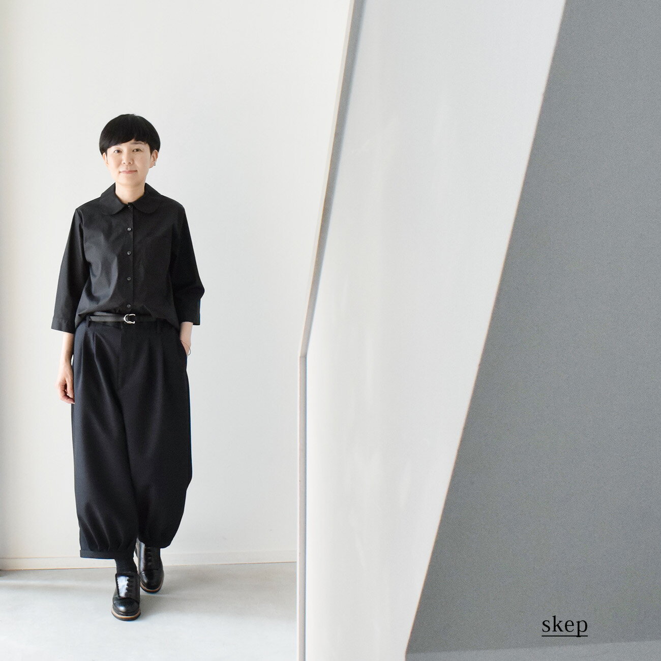 【送料無料】 バルーンパンツ レディースパンツ ポリエステル100% 黒 ブラック ブラックパンツ ポリエステルパンツ 大人 きれいめ skep スケップ 【短め丈で裾ベルトのバルーンパンツ(ツイル:中肉厚):黒[PT49SPBK-T]】