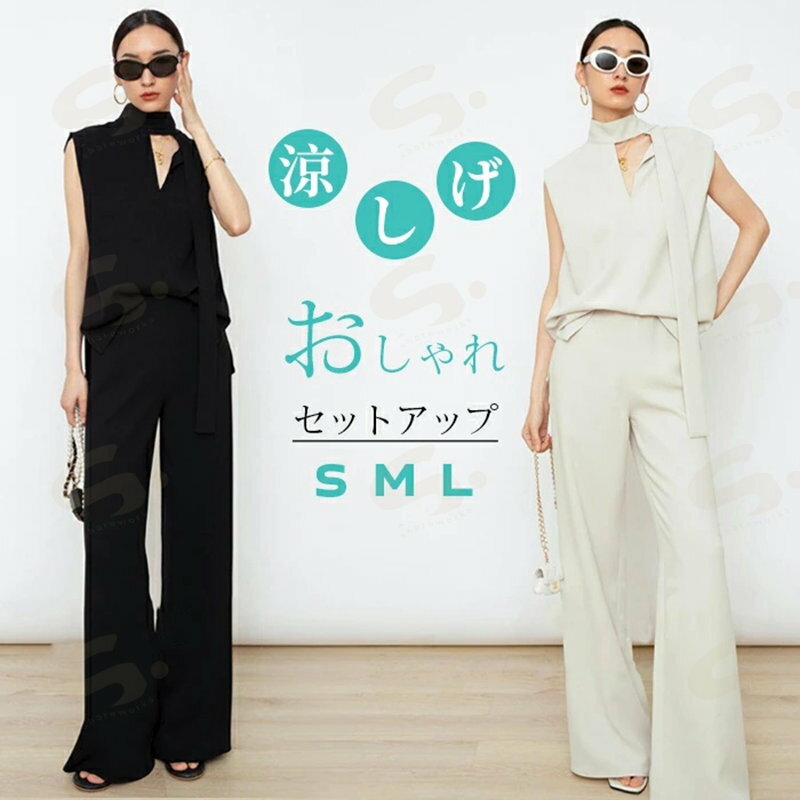 セットアップ ノースリーブ 夏 春夏 ロングパンツ パンツドレス レディース パンツスーツ 無地 女の子 結婚式 卒業式 入学式 ガウチョパンツ ワイドパンツ 体型カバー ゆったり 涼しげ 脚長効果 欧米風 フォーマル カジュアル