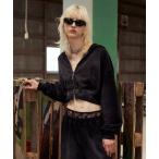 パーカー 裏パイルクロップドジップフーディー レディース