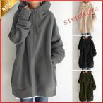 パーカー レディース ジップアップパーカー ロング丈 裏起毛 パーカー 無地 秋冬 レディース アウター 部屋着 暖かい 大きいサイズ ゆったり 新作