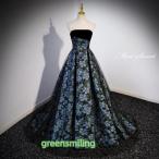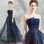 ロングドレス 50代 ネイビー 紺色 ビスチェドレス Aライン ベアトップ イブニングドレス 30代 40代 二次会 お呼ばれ パーティドレス フォーマル 発表会ドレス