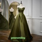 カラードレス ロングドレス 演奏会 イブニングドレス ステージ 舞台衣装 発表会 コンサート コンクール 大人 グリーン 濃緑 編み上げ ベアトップ 30代 40代