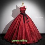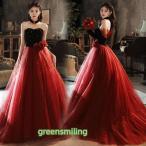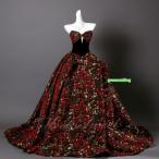 カラードレス プリンセスライン ロングドレス レッド ベアトップ リボン 花柄 ウェディングドレス 結婚式 二次会 花嫁 前撮り 演奏会 発表会 ステージ衣装