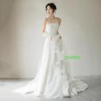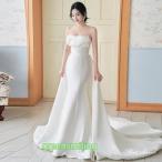 ウェディングドレス 花嫁 二次会 ウエディングドレス 結婚式 ロングドレス Aライン サテン ビスチェ ベアトップ 前撮り 披露宴 シンプル ブライダル トレーン
