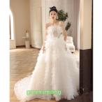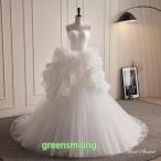 ウェディングドレス ロングドレス プリンセスドレス フリル プリンセスラインドレス ベアトップ 二次会 結婚式 前撮り 花嫁 ウエディングドレス チュール