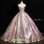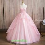 カラードレス プリンセスライン 花柄 ベアトップ ピンク リボン ロングドレス ウェディングドレス 結婚式 二次会 花嫁 前撮り 演奏会 発表会 ステージ衣装
