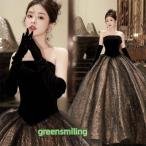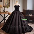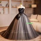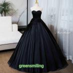 カラードレス プリンセスライン ブラック ベアトップ 黒 ロングドレス ウェディングドレス 結婚式 二次会 花嫁 前撮り 演奏会 発表会 ステージ衣装 お洒落