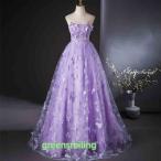 カラードレス パープル 蝶 紫 ベアトップ チューブトップ ウェディングドレス 二次会 演奏会 発表会 ロングドレス 結婚式 ステージドレス ウエディングドレス