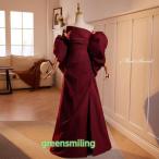 カラードレス Aラインドレス ワインレッド ベアトップ 袖付き ロングドレス ウェディングドレス 結婚式 二次会 花嫁 前撮り 演奏会 発表会 ステージ衣装