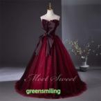 カラードレス プリンセスライン ワインレッド ベアトップ 編み上げ ロングドレス ウェディングドレス 結婚式 二次会 花嫁 前撮り 演奏会 発表会 ステージ衣装