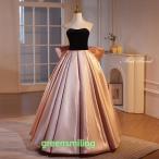 カラードレス プリンセスライン ピンク ベアトップ 大きいリボン ロングドレス ウェディングドレス 結婚式 二次会 花嫁 前撮り 演奏会 発表会 ステージ衣装