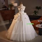 カラードレス 編み上げ 花柄 ビスチェ ベアトップ ロングドレス 結婚式 二次会 発表会 演奏会 ウェディングドレス ウエディングドレス プリンセス Aラインドレス