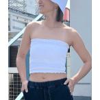 シアーフリルオフショルダー異素材ベアトップ レディース