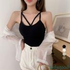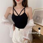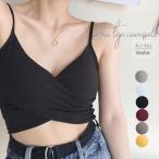 フロントクロス キャミソール レディース カップ付き タンクトップ 無地 ベアトップ ショットタイプ へそ出し トップス
