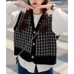 ベスト ジレ レディース レトロチェックニットベスト レディース