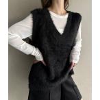 ベスト ジレ 「新色追加」起毛フェザーVネックニットベスト レディース