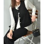 ベスト ジレ ラメツイード裾チュールフリルジレ レディース