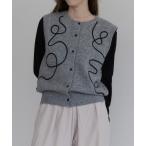 ベスト ジレ 深Vネックショート丈フェザージャガード/テープヤーンフリンジベスト レディース