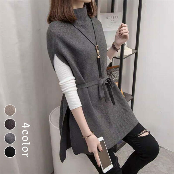 【期間限定50%OFF】ニットベスト レディース ベスト トップス 重ねて楽しむ。ガーター編みニットベスト スリット 洗える ニット 秋冬 ノースリーブ ゆったり 体型カバー アクリル シンプル カジュアル ベーシック レイヤード