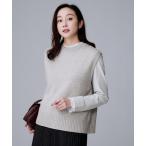 ベスト ジレ 「洗える」コットンリリー モックネックニットベスト レディース