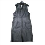 超美品 HERMES エルメス ディアスキン セリエ ボタン ロング ベストジレ レザー レディース ブランド ファッション トップス ブラック h778