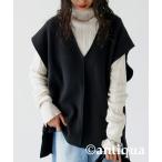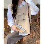 ベスト ジレ フェイクリングウール金ボタンノーカラーベスト レディース