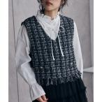 ベスト ジレ ツイード調ボタン使いVネックベスト レディース