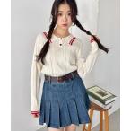 ニット セーター 「Eclat one」ゴールドボタン ニット ポロシャツ レディース
