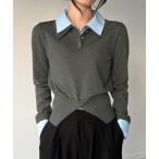 ニット セーター 「新色追加」シャツレイヤードポロニット レディース