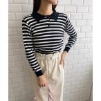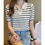 tシャツ ニットボーダー半袖ポロシャツ レディース