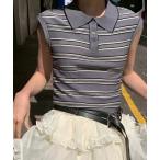 tシャツ マルチボーダーノースリポロシャツ レディース