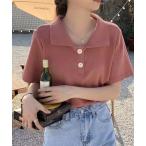 ポロシャツ ポロ ポロ襟×スキッパーデザインサマーニット レディース