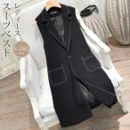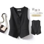 レディース ベスト スーツ ベスト ロングベスト Vネック ジレ 袖なしコート アウター オフィス ベスト 事務服 チョッキ 大きいサイズ ブラック おしゃれ 着痩せ