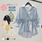 ブラウス レディース シャツ 長袖 スキッパー Vネック プルオーバー シフォン トップス ゆったり きれいめ オフィス フォーマル おしゃれ 秋服
