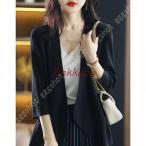 Vネック カーディガン レディース 7分袖ニット 事務服 薄手 オフィス きれいめ かわいい かーでがんレディース 女 ボレロ 無地 UVカット 仕事 黒 白